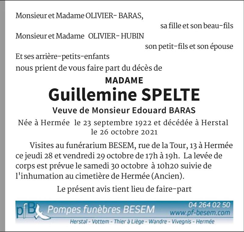 Décédée à Herstal (4040) le mardi 26 octobre 2021 à l'âge de 99 ans