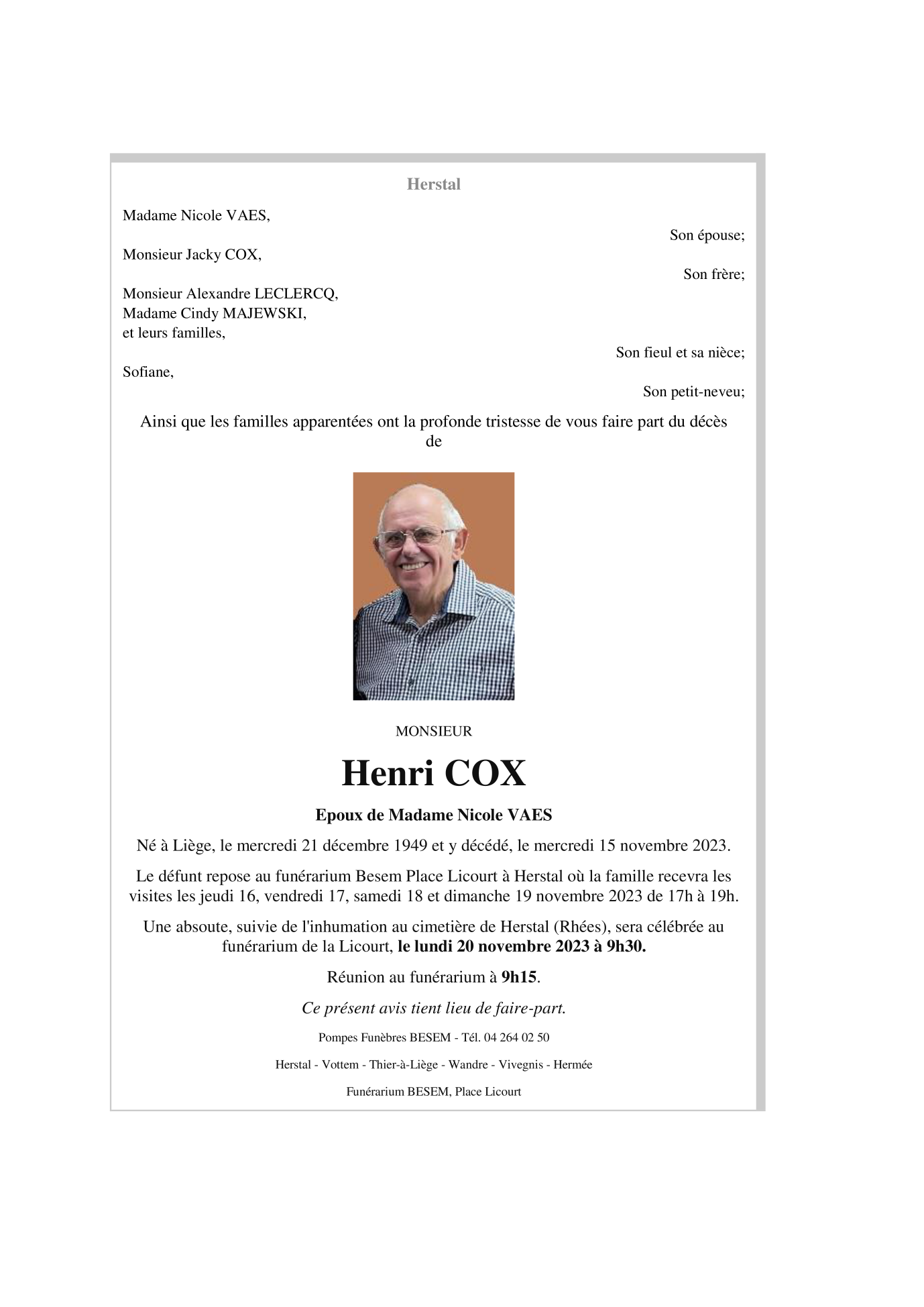 Monsieur Henri COX