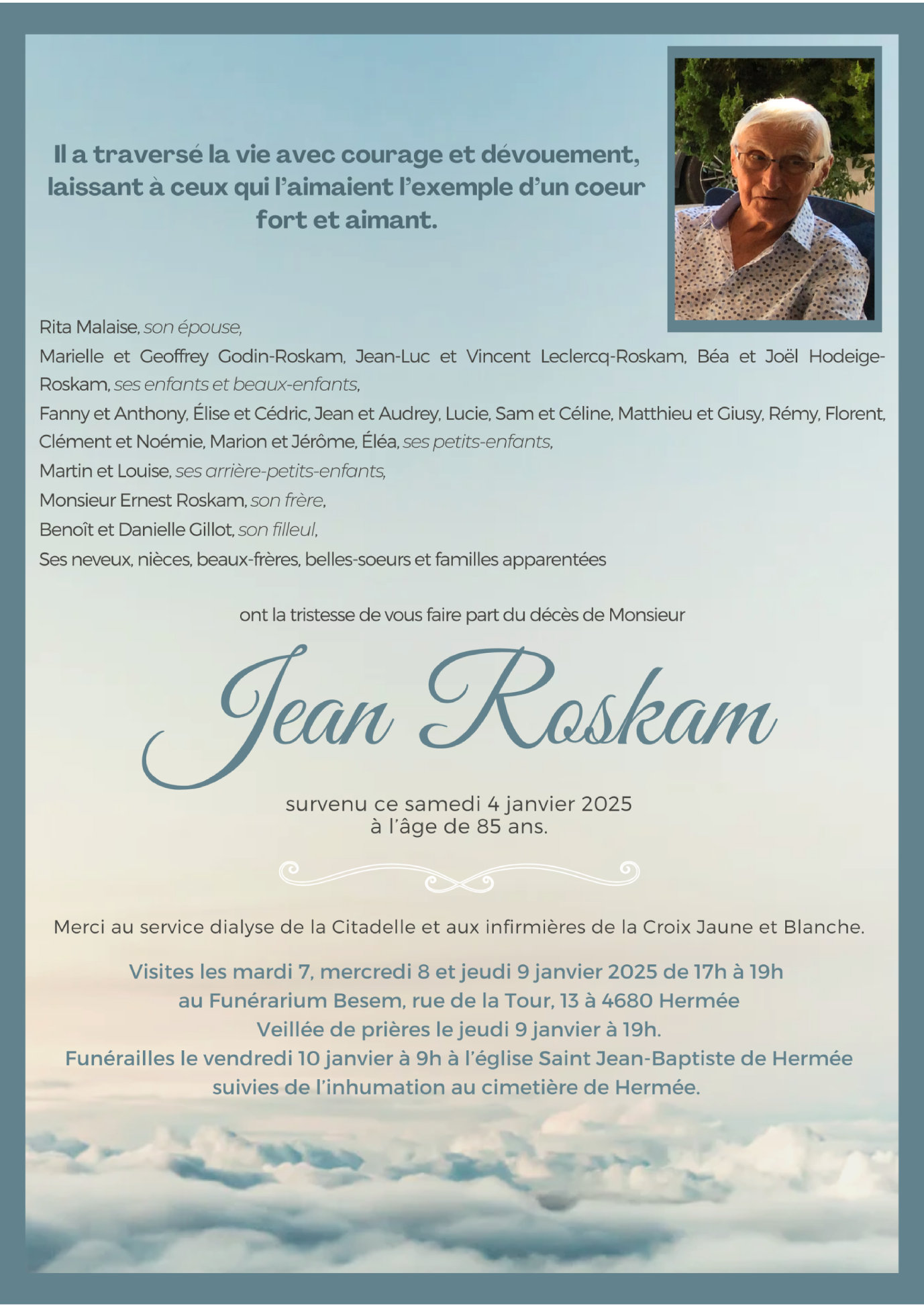 Décédé à Oupeye (4680) le samedi 4 janvier 2025 à l'âge de 85 ans