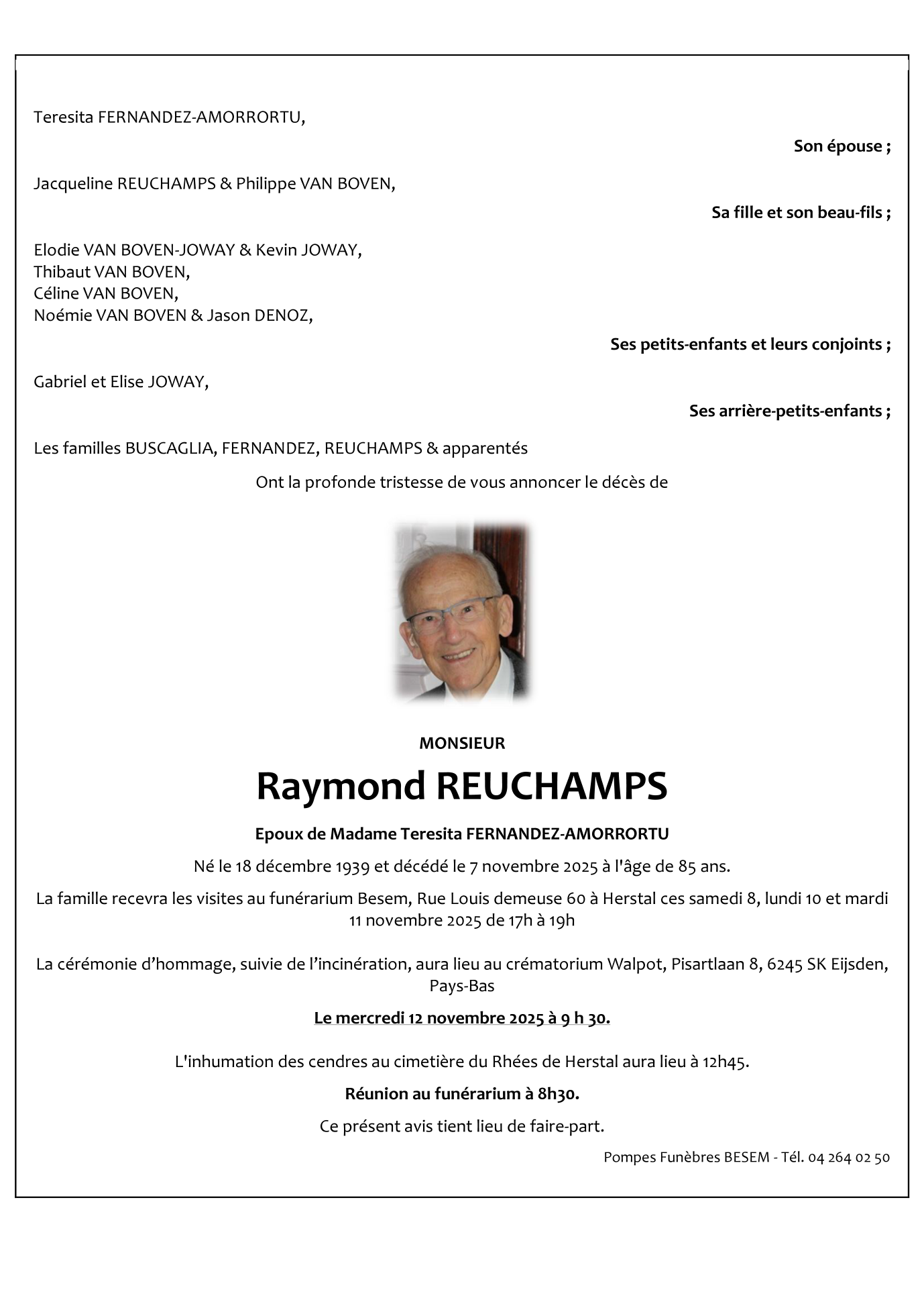 Décédé à Herstal (4040) le vendredi 7 novembre 2025 à l'âge de 85 ans